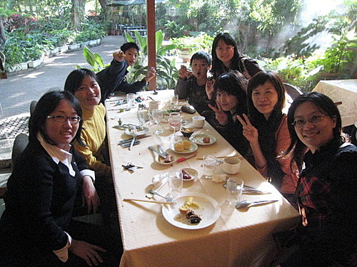 看看這群女人酒足飯飽之後杯盤狼藉的桌子...